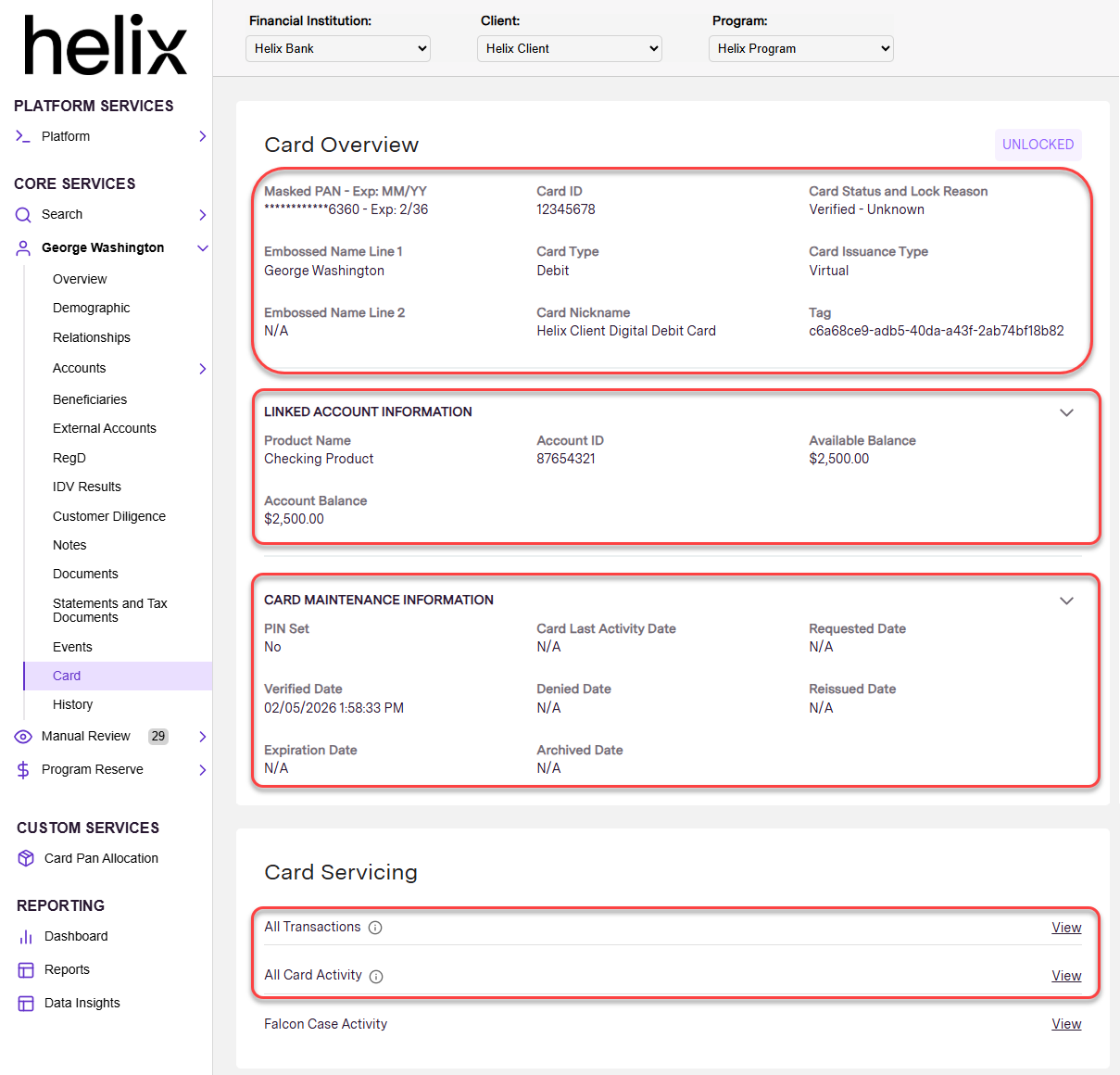 *NEW* Updated the Card Detail page to improve usability, highlight key information, and streamline servicing workflows.